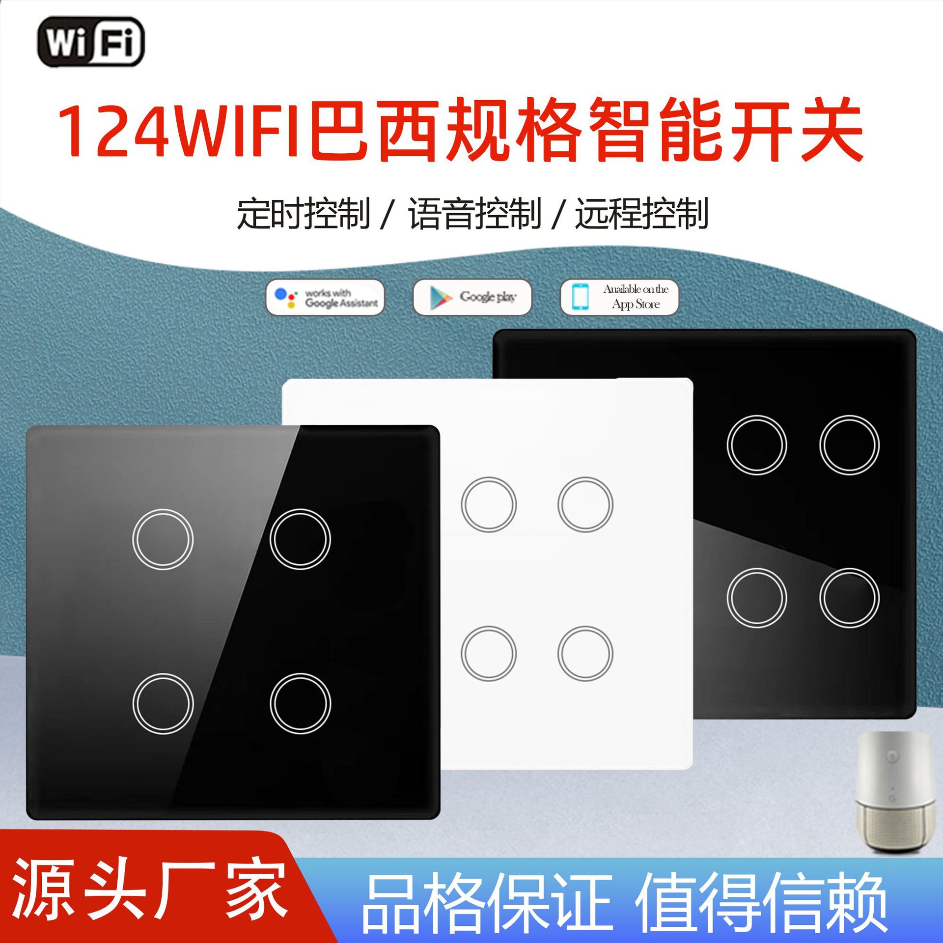 涂鸦WiFi巴西规墙壁智能触摸开关支持Alexa语音远程控制钢化玻璃