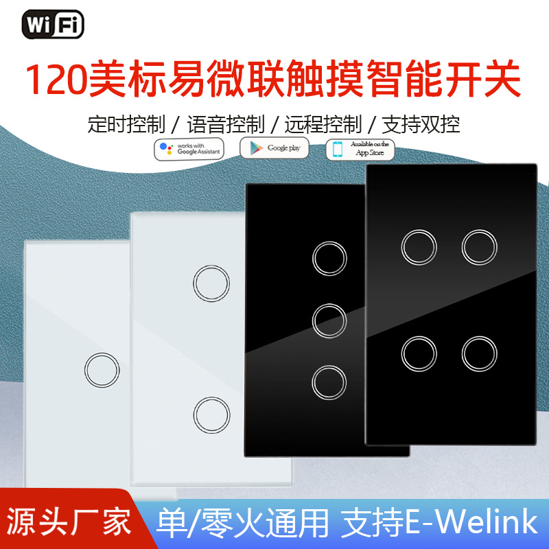 美规易微联智能WiFi触摸墙壁开关单零火兼容支持Google语音Alexa