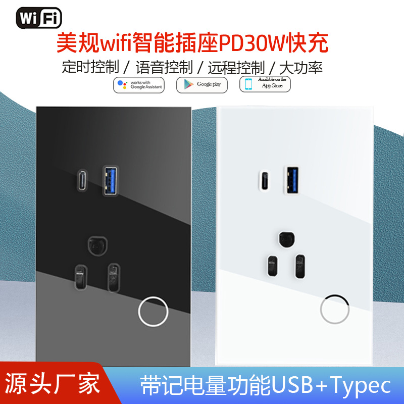 美规wifi智能插座PD30W快充支持断电记忆带记电量功能带USB+Typec