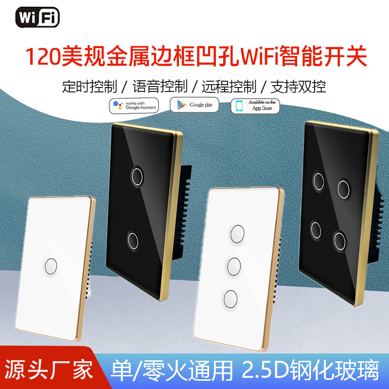 美规涂鸦WiFi铝合金框凹孔智能开关语音远程控制2.5D钢化玻璃面板