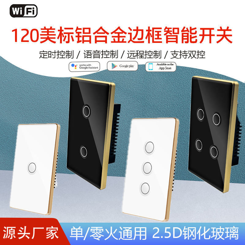 美规涂鸦WiFi铝合金边框智能开关语音触摸控制钢化玻璃墙壁远程
