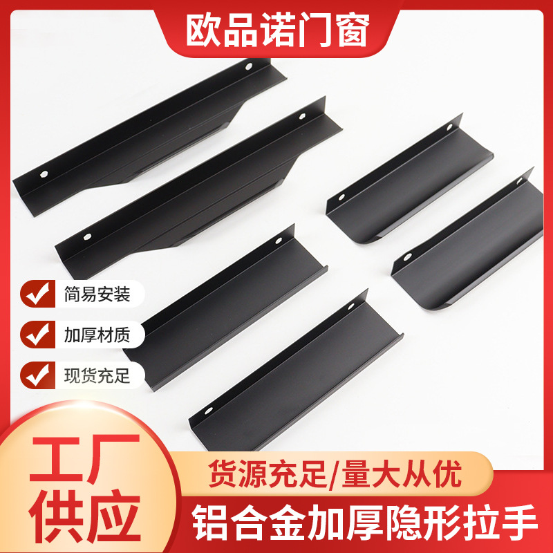 免打孔门侧装封边长款柜门把手隐形拉手直角黑色橱柜简约抽屉衣柜