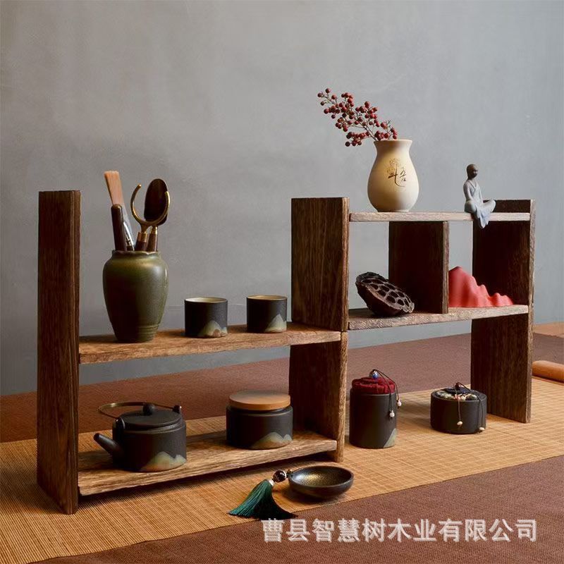 实木复古茶杯架茶具茶道收纳架博古架桌面客厅简约置物架书架中式