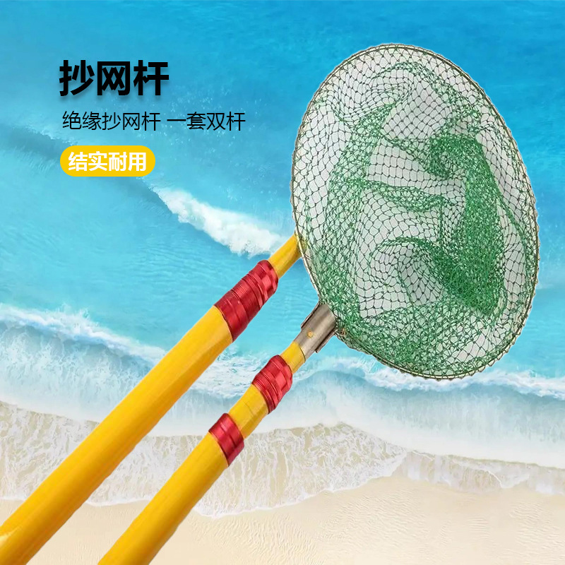加厚抄网杆玻璃钢抄网竿单杆双杆金属定位伸缩杆鱼竿绝缘抄网杆