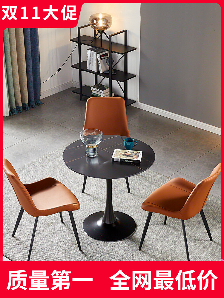 岩板圆桌休闲接待洽谈桌椅组合家用饭桌小圆桌阳台桌子茶几咖啡桌