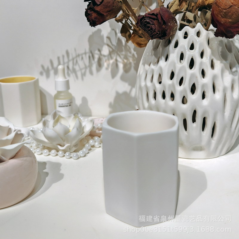 跨境创意简约家居ins风香薰蜡烛杯陶瓷八角杯装饰亚光白瓷摆件