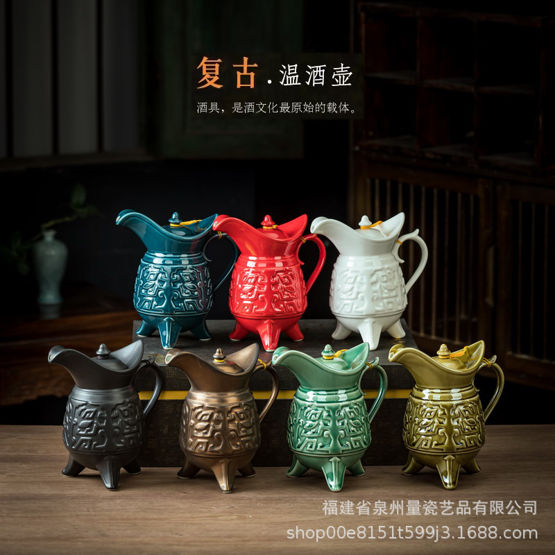 仿古陶瓷家用1斤爵壶白酒壶分酒器中式黄酒烈酒酒盅酒具套装批发