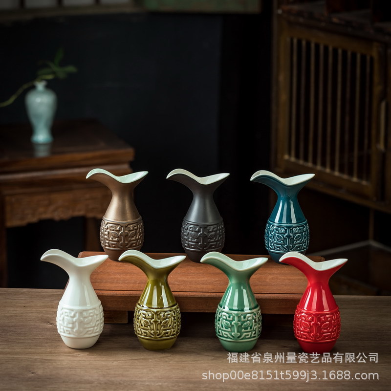 仿古青瓷觚杯白酒烈酒酒杯高脚杯大容量二两创意酒樽摆件装饰批发