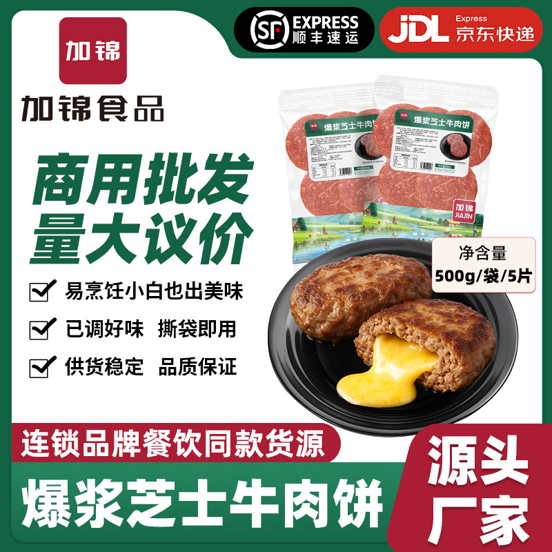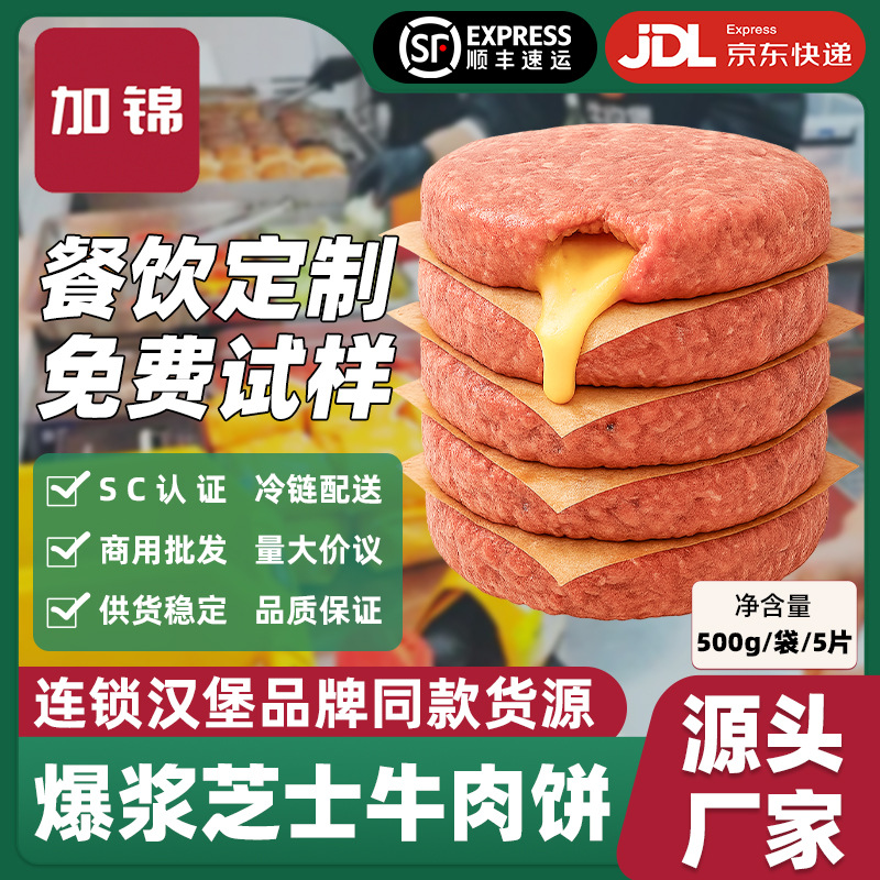 芝士牛肉饼外卖汉堡轻食店腌制半成品流心商用代工贴牌批发商用