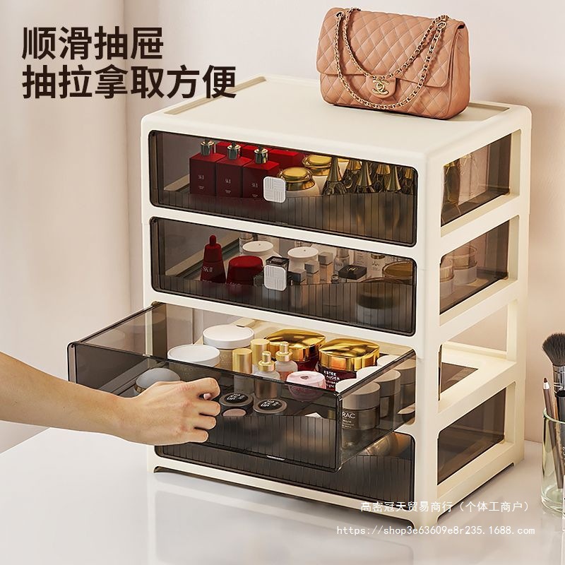 桌面收纳盒大容量多层透明抽屉式梳妆台化妆品防尘置物架杂物整理