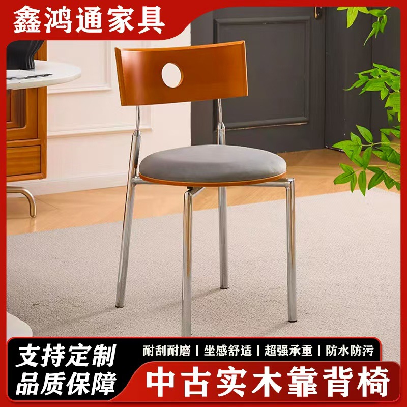 复古网红休闲实木设计师子靠背椅不锈钢餐桌椅中古家用餐餐椅酒店