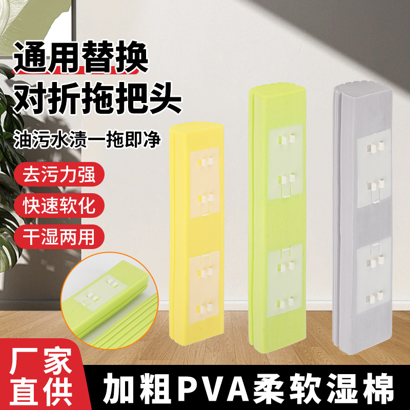 工厂定制对折海绵拖把头替换头pva吸水拖把配件 折叠式胶棉拖把头
