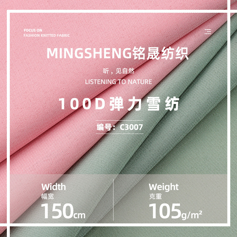 100D弹力雪纺 高密涤纶雪纺汉服连衣裙上衣布料 平纹高品质面料批