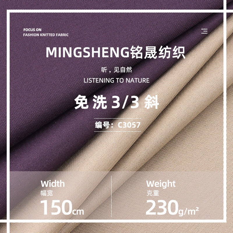 免洗3/3斜 棉感工装裤布料 涤纶梭织230克西装套装抗起球棉服面料