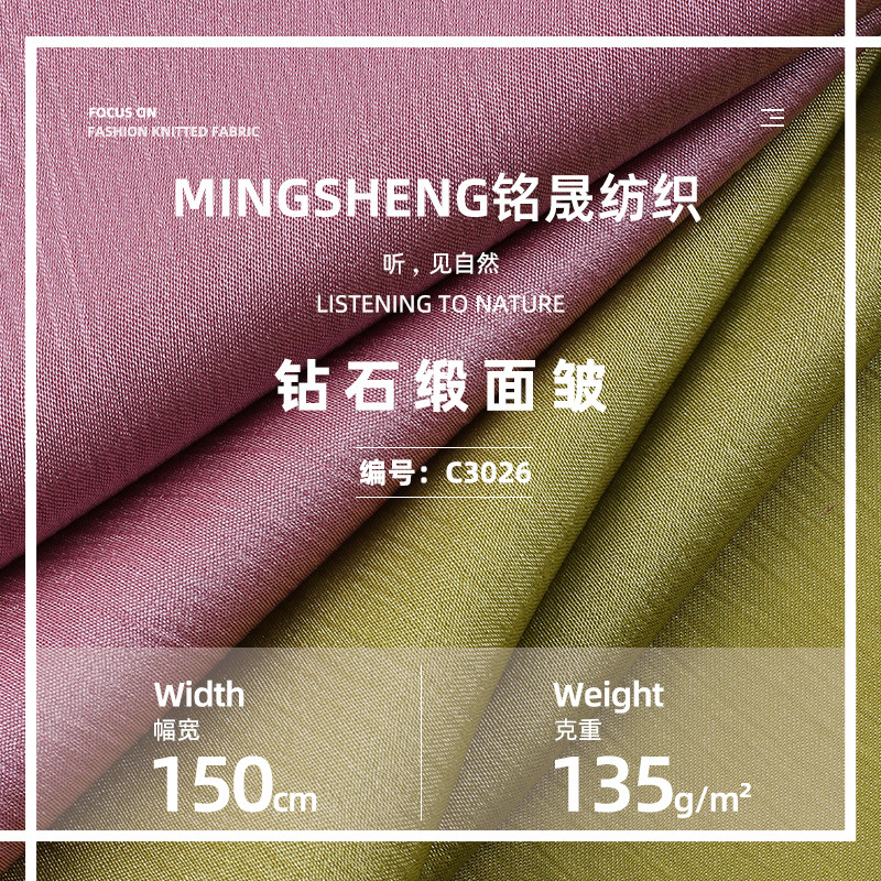 钻石缎面皱 闪光钻石缎婚纱服裙子梭织涤纶礼服布料 衬衫汉服面料