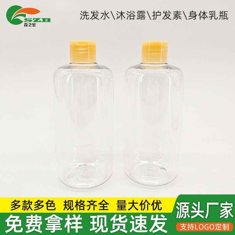 森之宝透明按压式洗发沐浴露空瓶子580mlpet椭圆扁瓶32牙毫升圆瓶