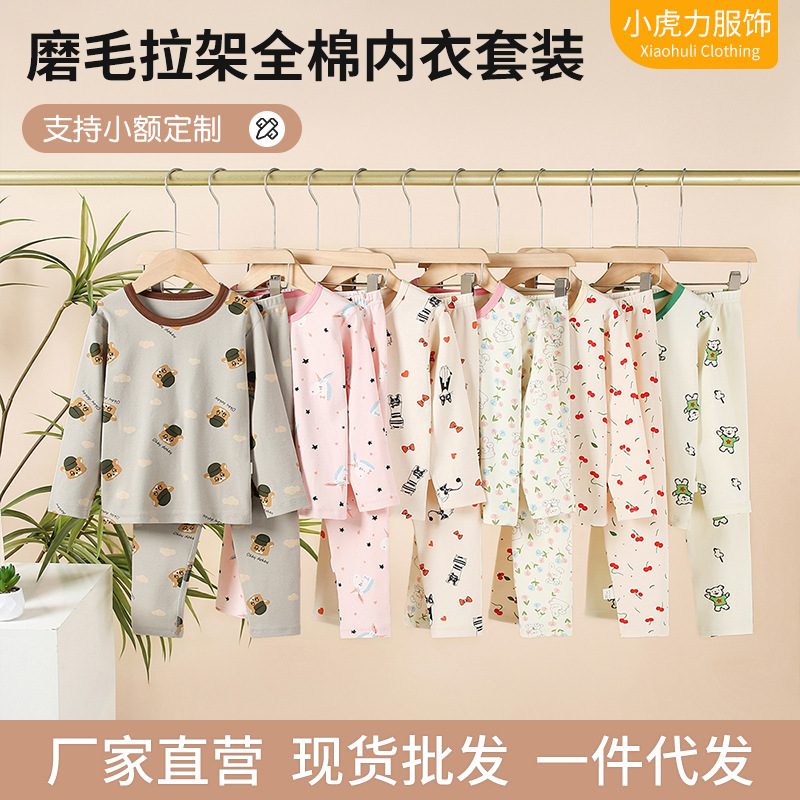 XM-260g磨毛拉架棉质内衣套装卡通睡衣套装男通女童秋冬款保暖衣