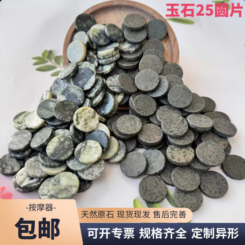 现货包邮岫玉25圆片养生保健按摩定制异形工艺品枕头床垫玉石片