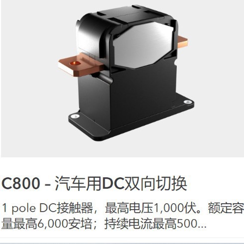 适用于汽车应用Schaltbau Eddicy C800 – 1系列极双向直流接触器