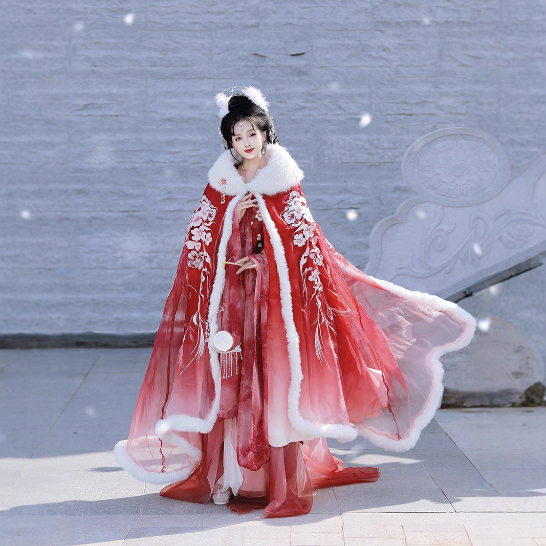 洛竹原创汉服女梅映春雪仙女交领齐腰裙仙气加绒保暖披风斗篷