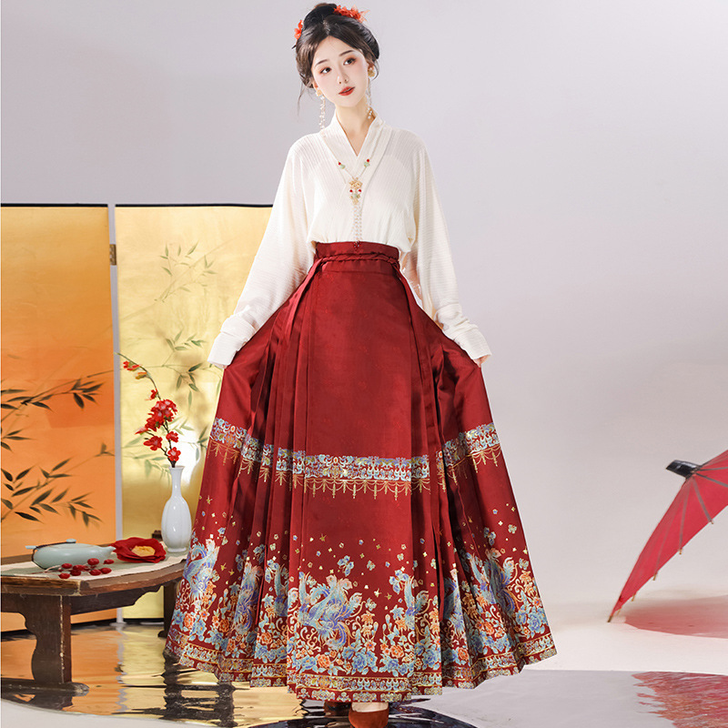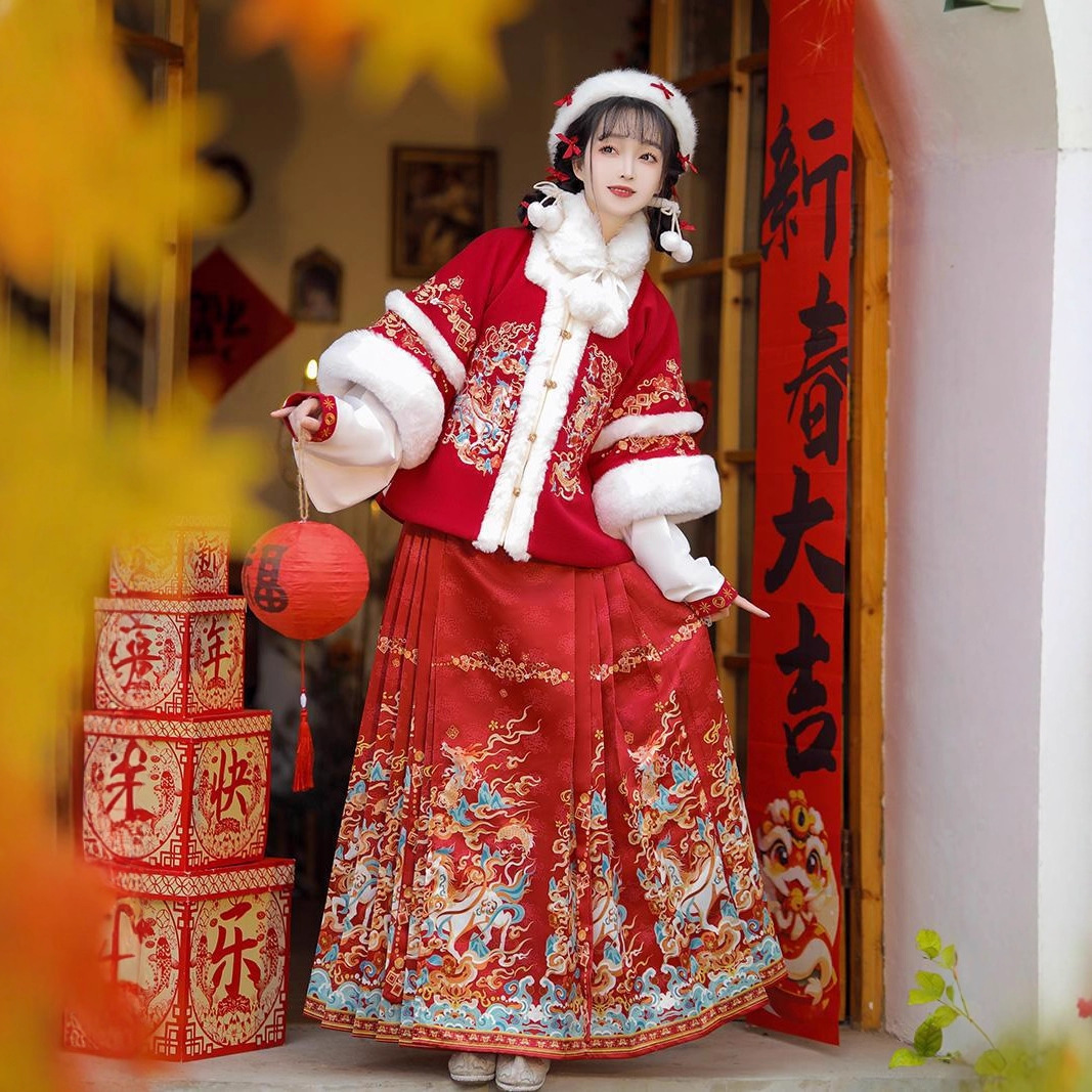 十二祥瑞贺春原创明制汉服女2025新款冬季马面裙加绒加厚拜年古装