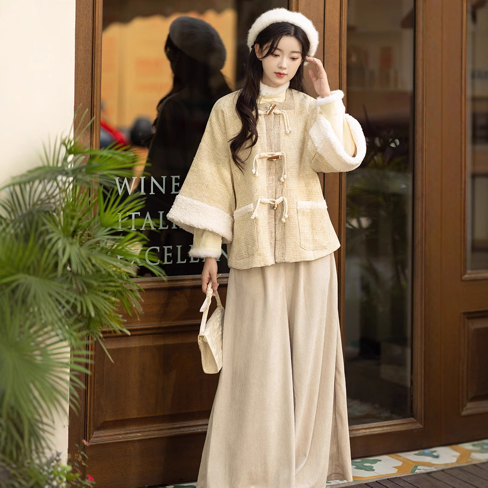 十二月绒绒新中式国风套装圆领短袄宋裤明制汉服女日常通勤秋冬款