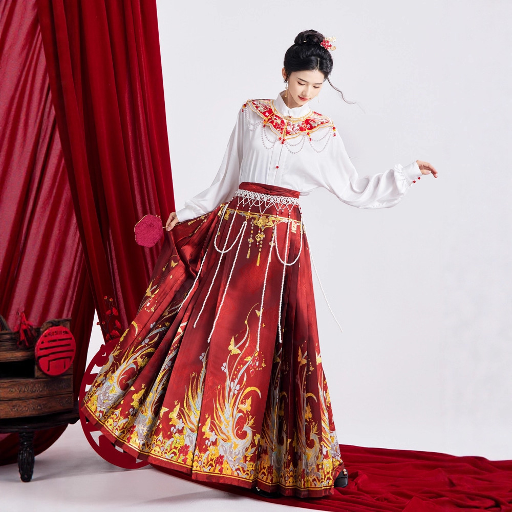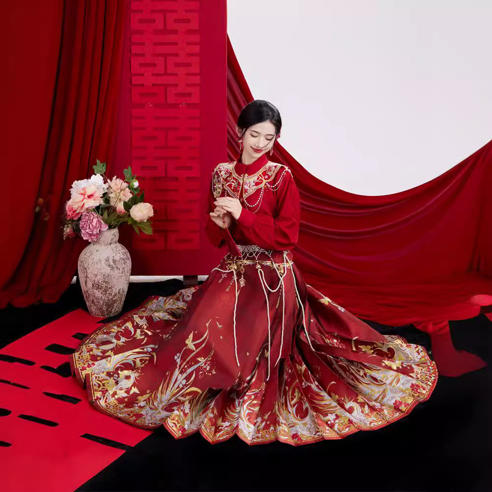敬酒服马面裙套装2025女汉服红色中式订婚回门半身裙秋冬中国风