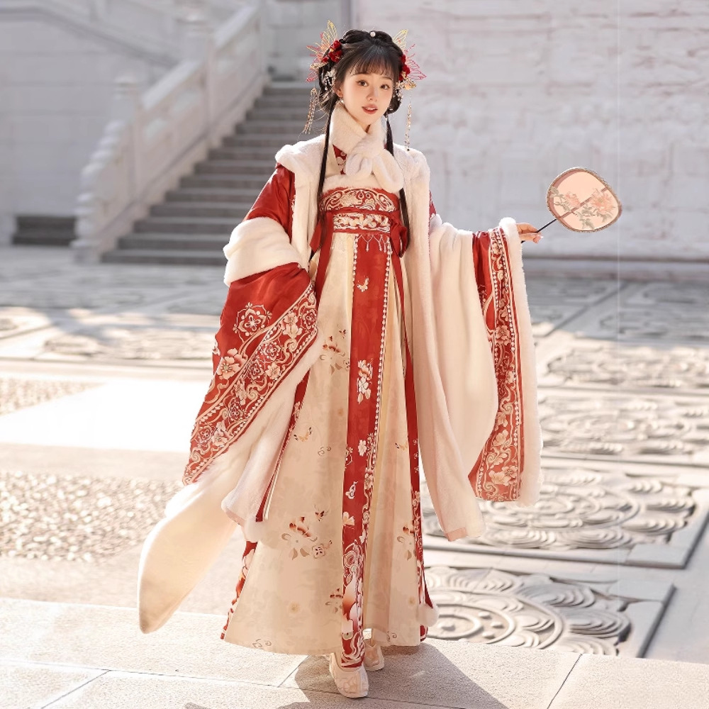 原创汉服女【雪域神女】晋制交领齐腰裙仙气古装披风加绒保暖