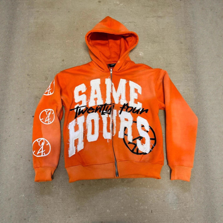 2026街头潮流复古百搭欧美跨境秋冬连帽拉链上衣宽松卫衣男女同款