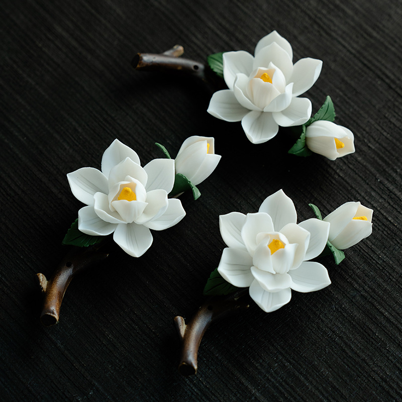 手工捏栀子花陶瓷香插底座创意多功能古风文房四宝书法笔搁笔架子
