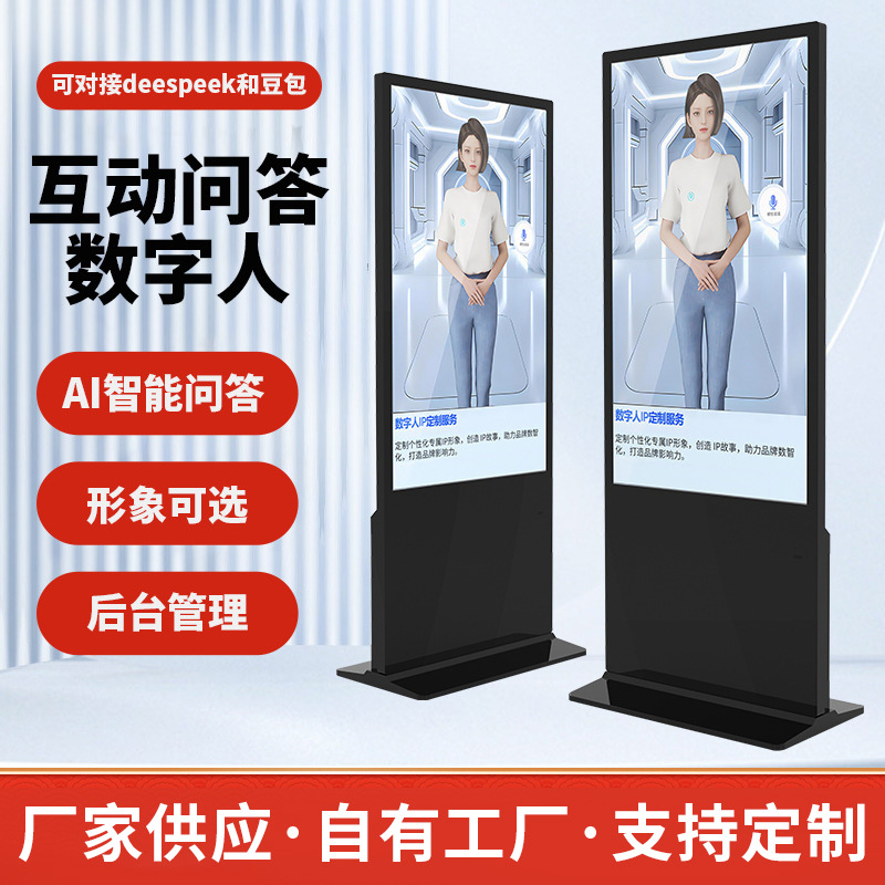 厂家供应75英寸虚拟AI数字人全息一体机落地海报屏4K查询显示屏