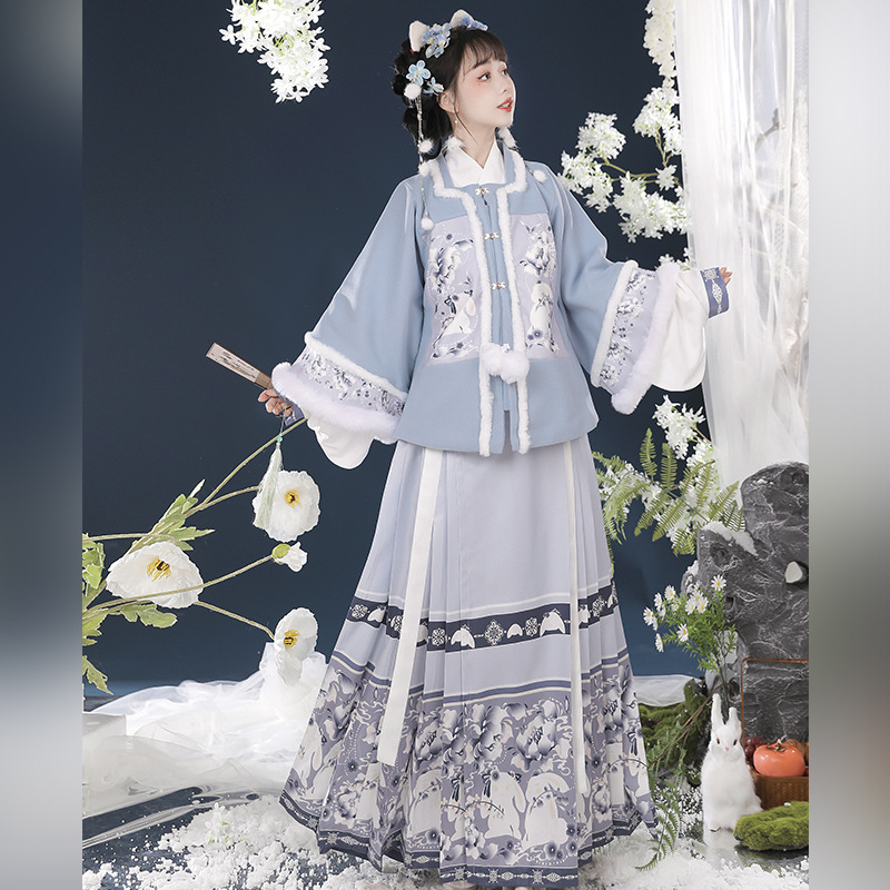 十二原创【雪玉兔】明制汉服女方领补服半袖马面裙拜年秋冬加绒