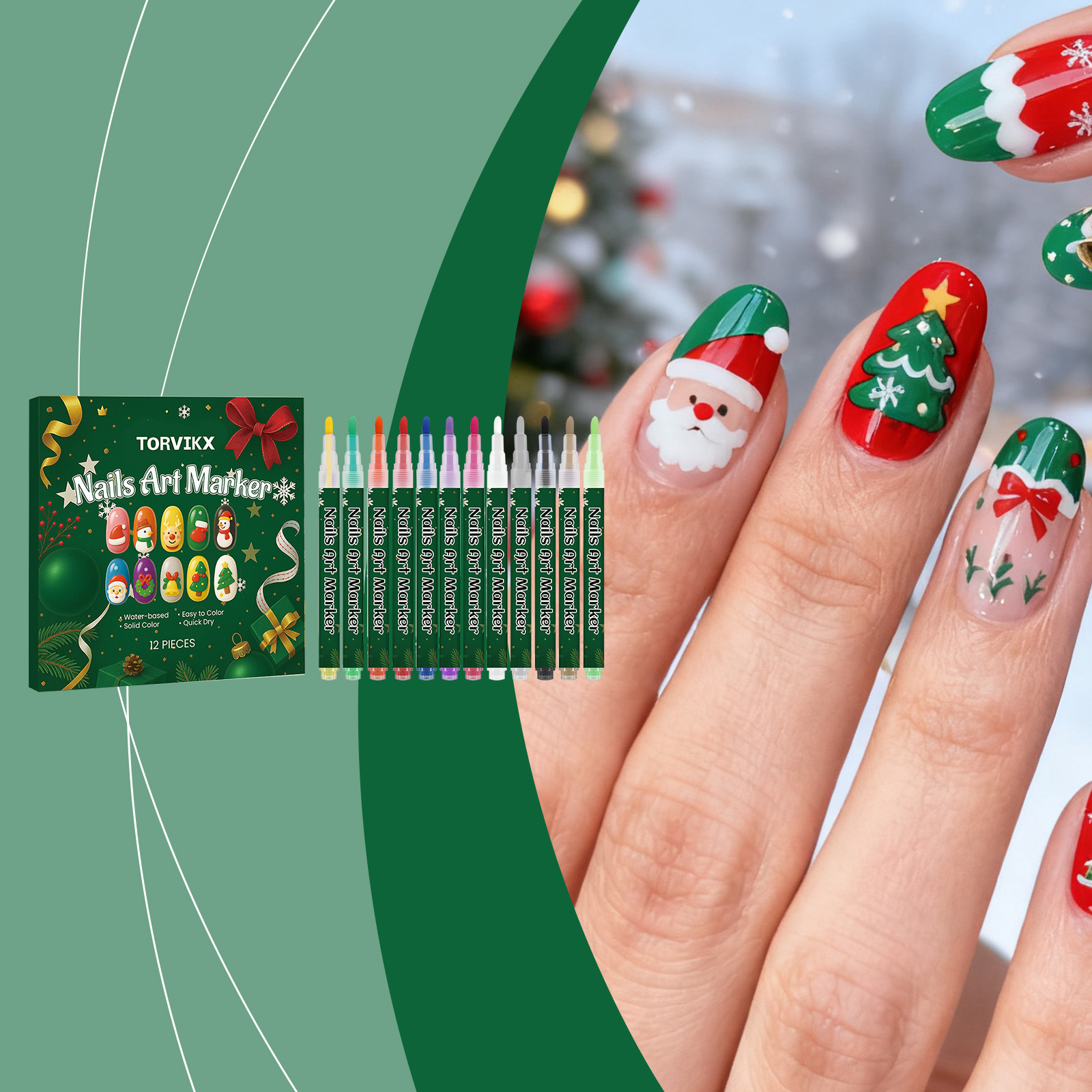 TORVIKX DIY圣诞美甲艺术绘画笔 水性涂鸦易操作勾勒绘色美甲笔