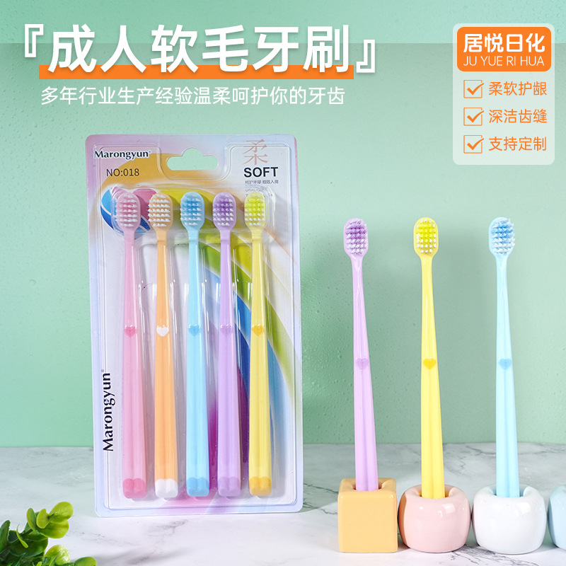 5支装家用软毛超市牙刷批发马卡龙色爱心款男女成人软毛牙刷