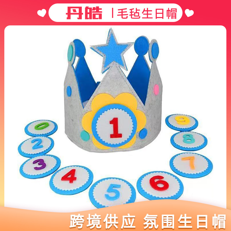 跨境毛毡生日帽可爱宝宝生日帽太阳花帽节日庆祝派对头装饰彩色帽