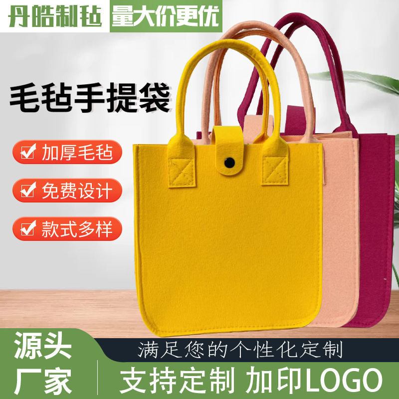 定制 跨境毛毡包加印广告LOGO毛毡手提袋通勤大容量运动购物