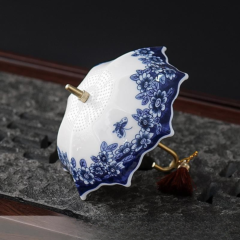 创意青花雨伞茶漏茶滤陶瓷茶叶过滤网茶道配件茶桌茶台装饰品摆件