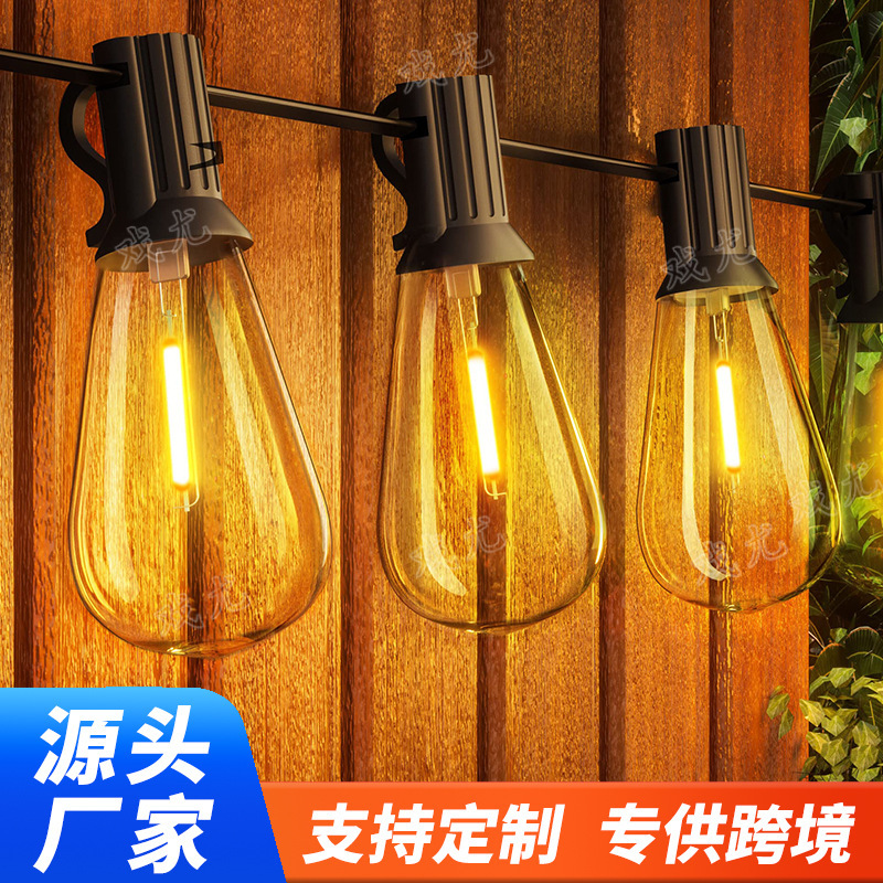 G40防水钨丝LED灯串220V复古装饰圣诞灯E12户外欧规庭院花园插电