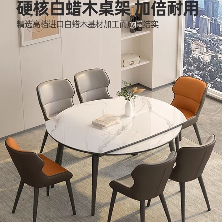 现代意大利奶油风玻璃餐桌椅子组合伸缩折叠方圆两用轻奢酒店饭桌