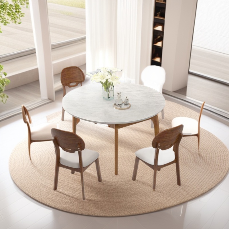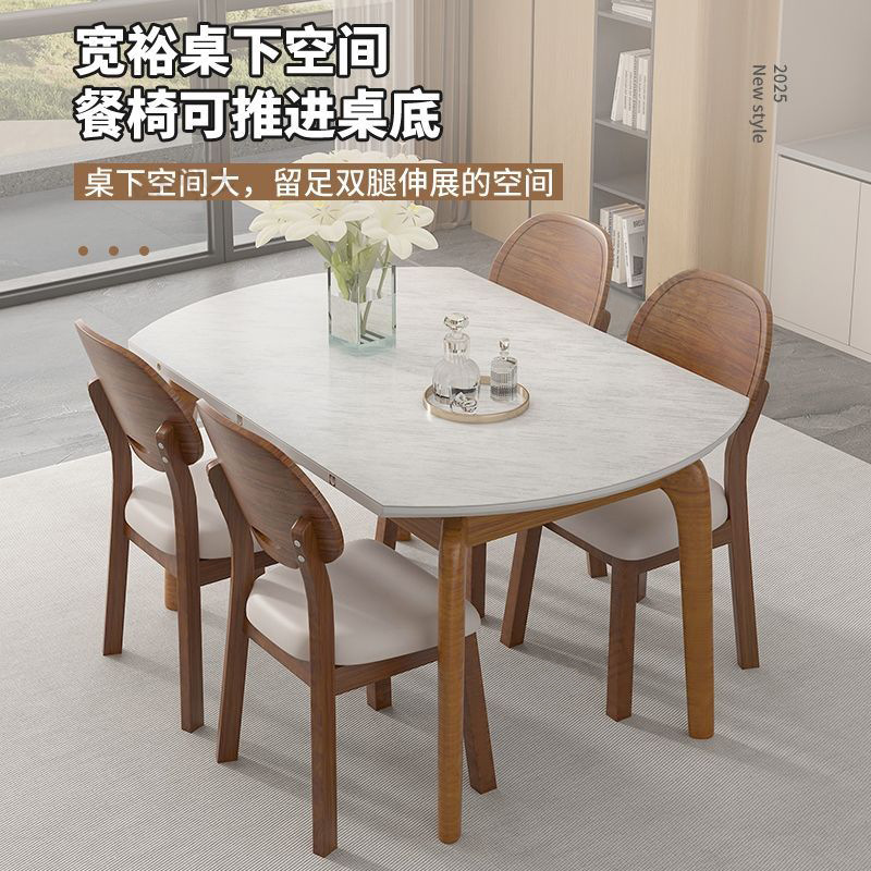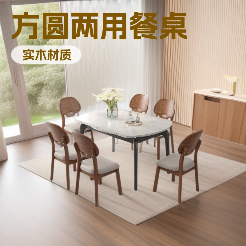 全实木餐桌可折叠家用小户型简约百搭方圆两用实木伸缩饭桌组合