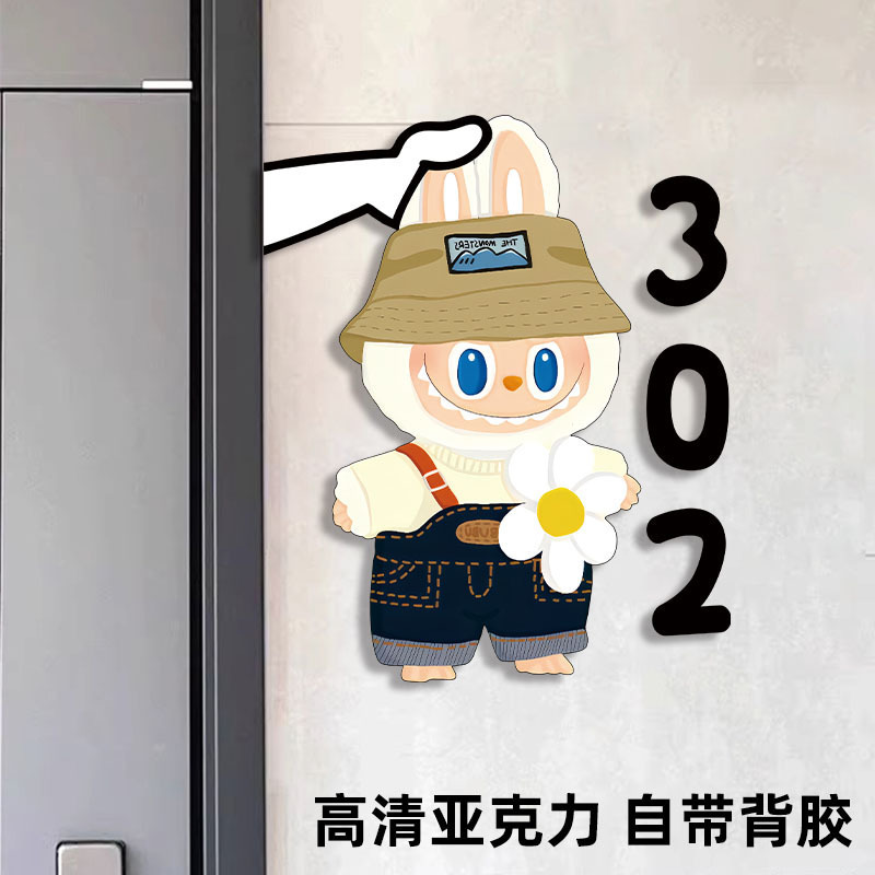 可爱拉布布家用指示门牌门牌数字号码牌创意门口装饰门外贴饰场景