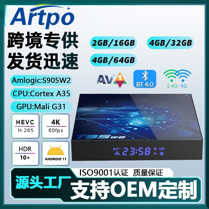 外贸T95W2 机顶盒 S905W2 Android11双频wifi+BT网络播放器TVBOX