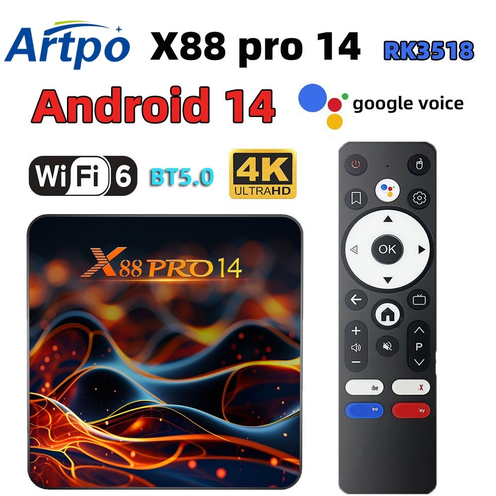 X88 PRO 14跨境热卖RK3518四核4K高清网络播放器安卓14.0机顶盒子