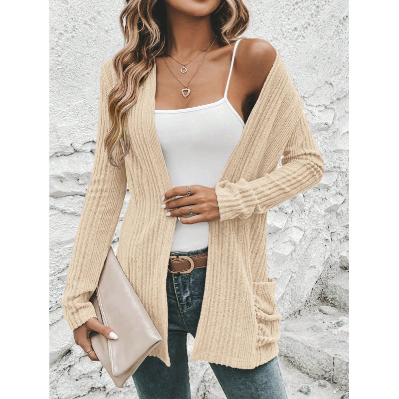 亚马逊独立站外贸女装秋季新款宽松坑条长袖针织长外套上衣