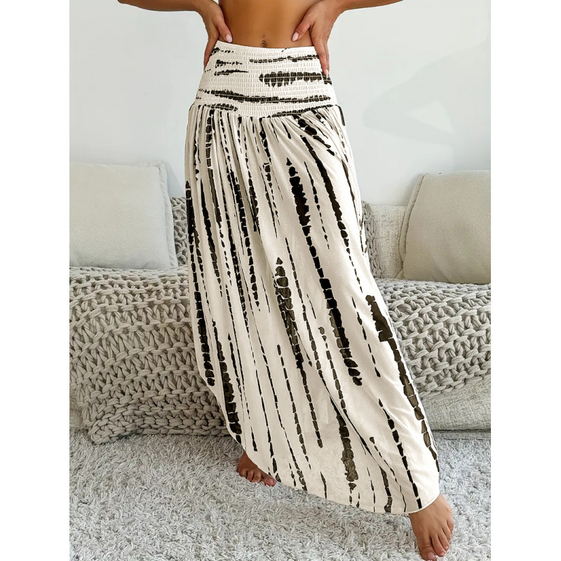 亚马逊独立站跨境外贸女装海边度假风松紧高腰印花半身裙