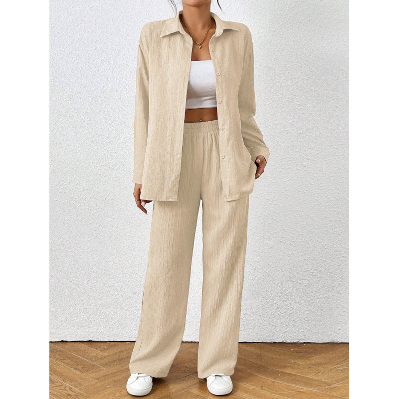 亚马逊独立站跨境外贸女装欧美休闲长袖衬衫阔腿长裤两件套装