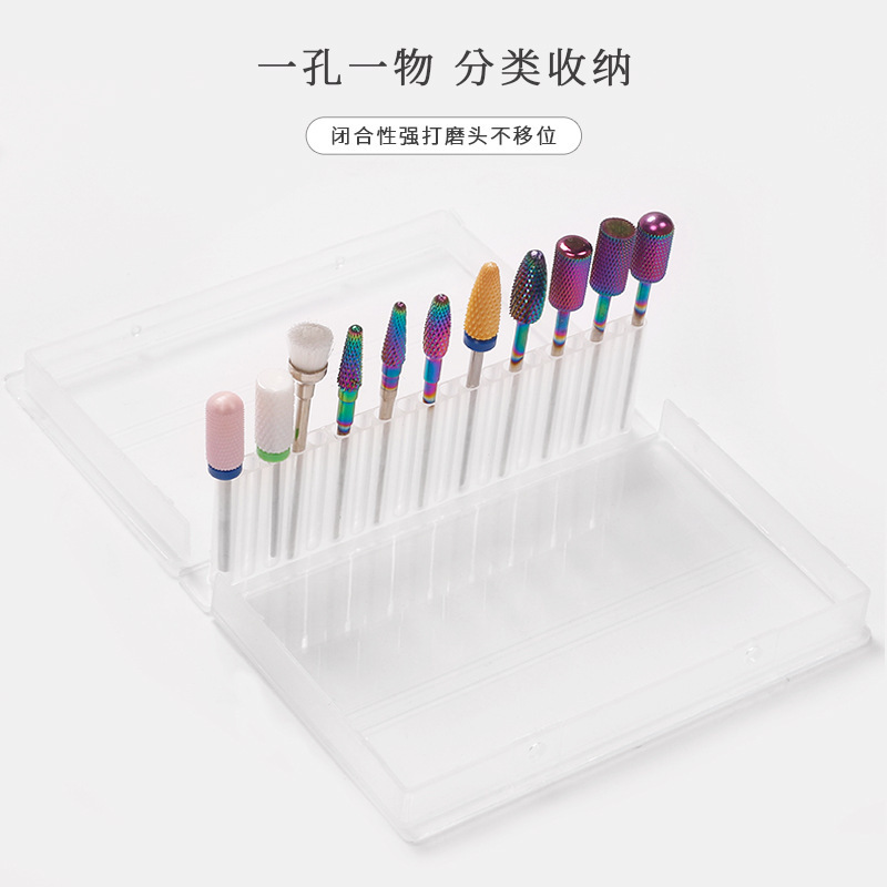 美甲打磨头收纳盒20孔磨头盒便携防尘翻盖展示收纳盒美甲店工具