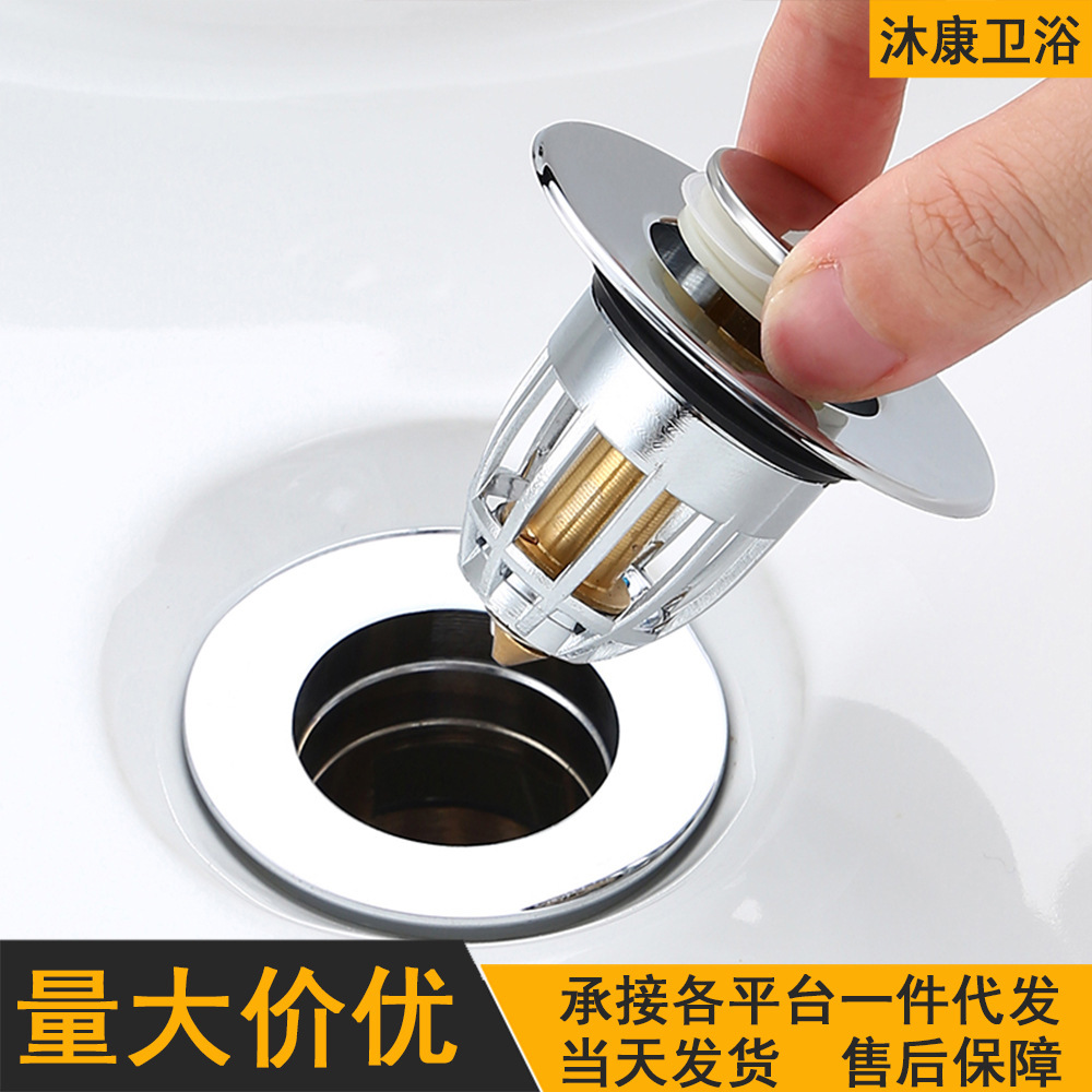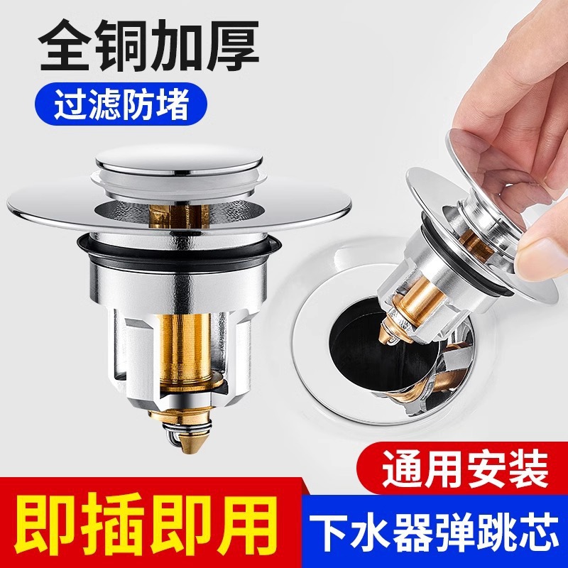 通用洗手盆漏水塞子卫生间铜芯下水器过滤防臭面盆弹跳芯按压式