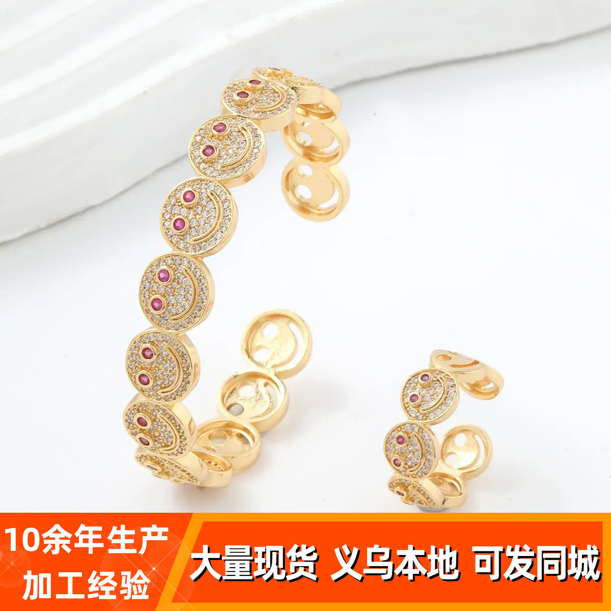 时尚镶钻笑脸手环戒指女跨境欧美个性轻奢ins高级感个性手镯戒指
