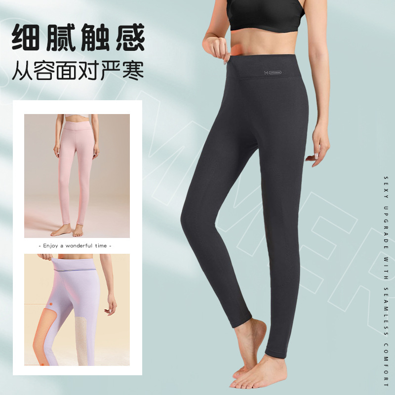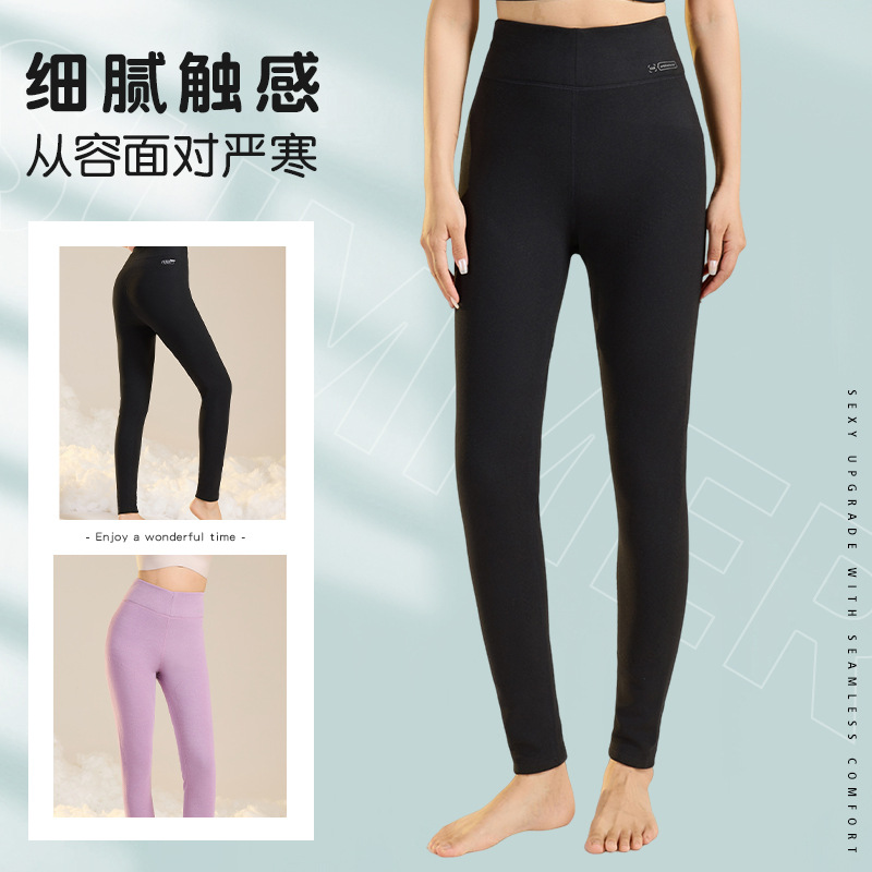 甄奢驼绒提臀收腹保暖裤女士高腰打底裤内穿秋冬季无痕包边加厚绒